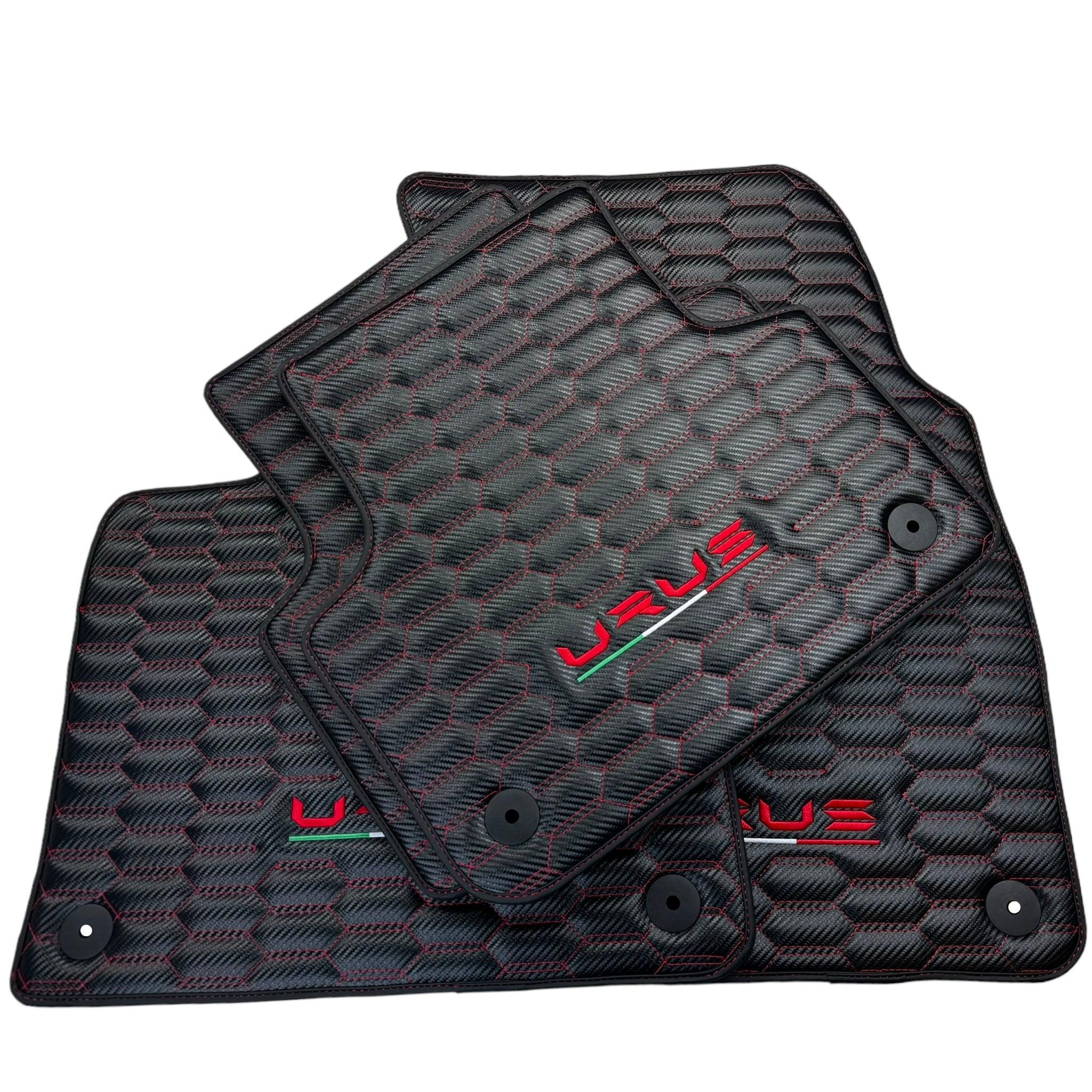 حصائر سيارات من الألياف الكربونية لسيارة لامبورغيني أوروس بخياطة حمراء