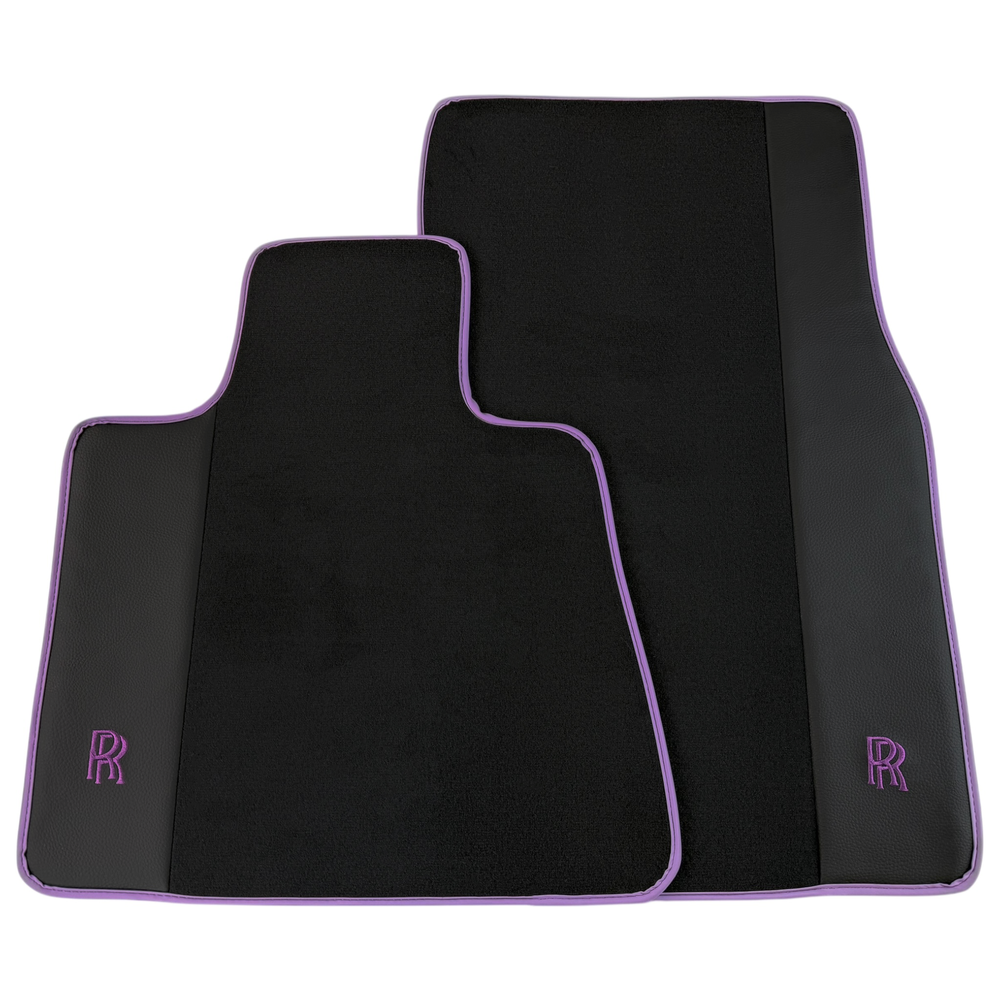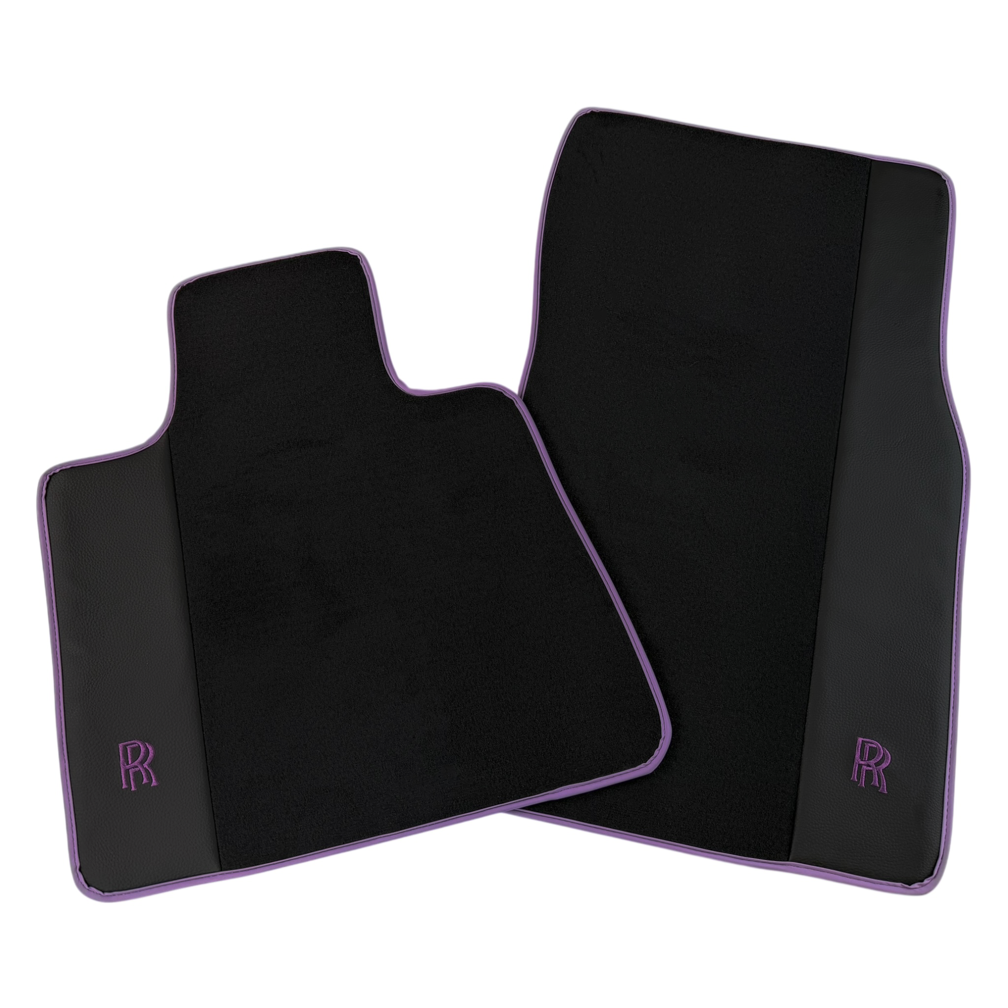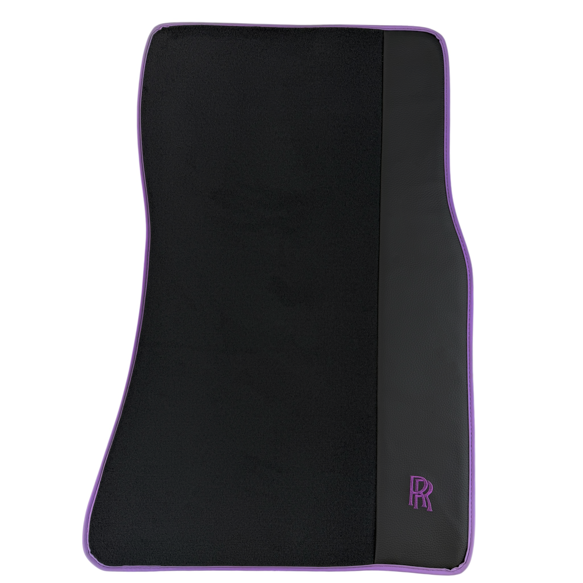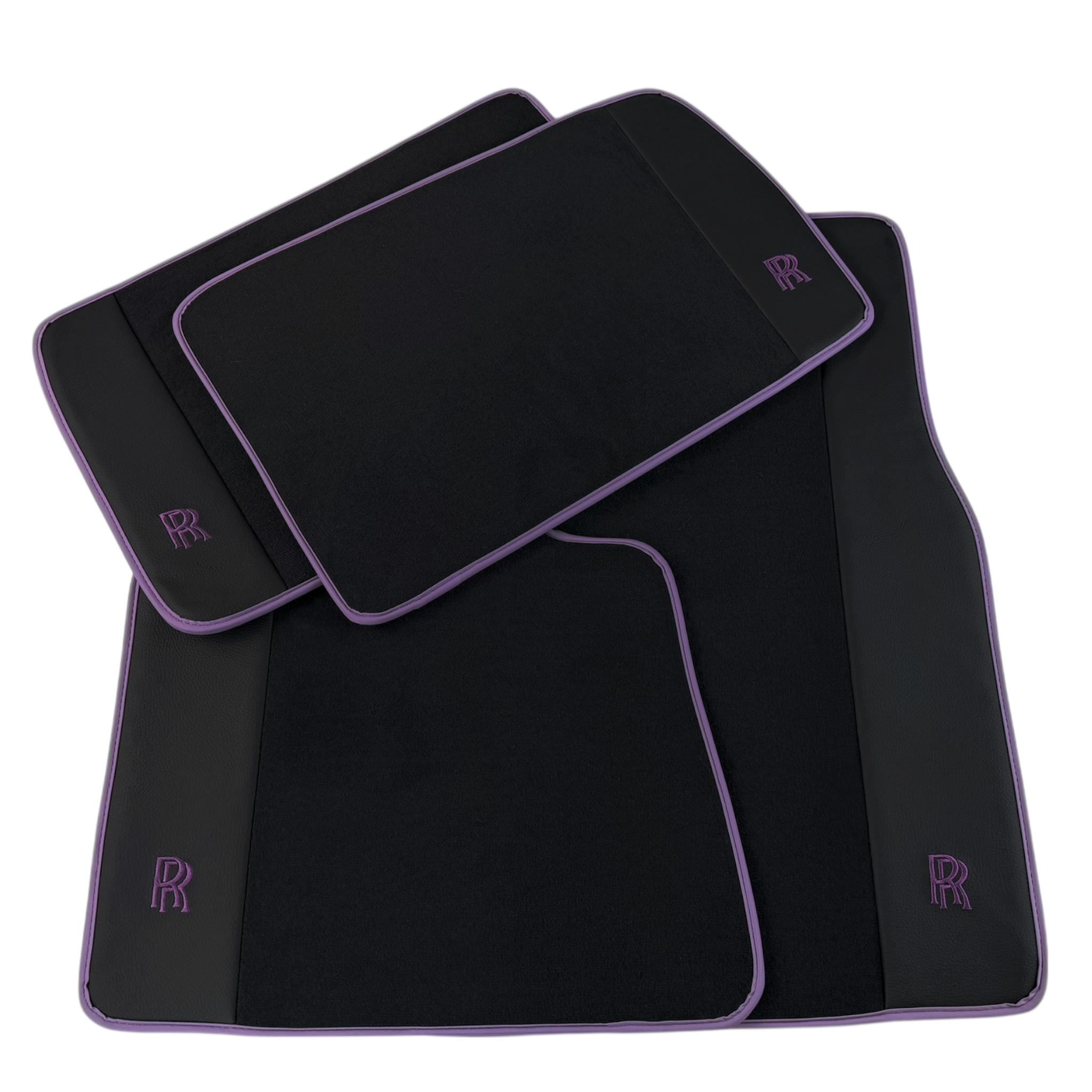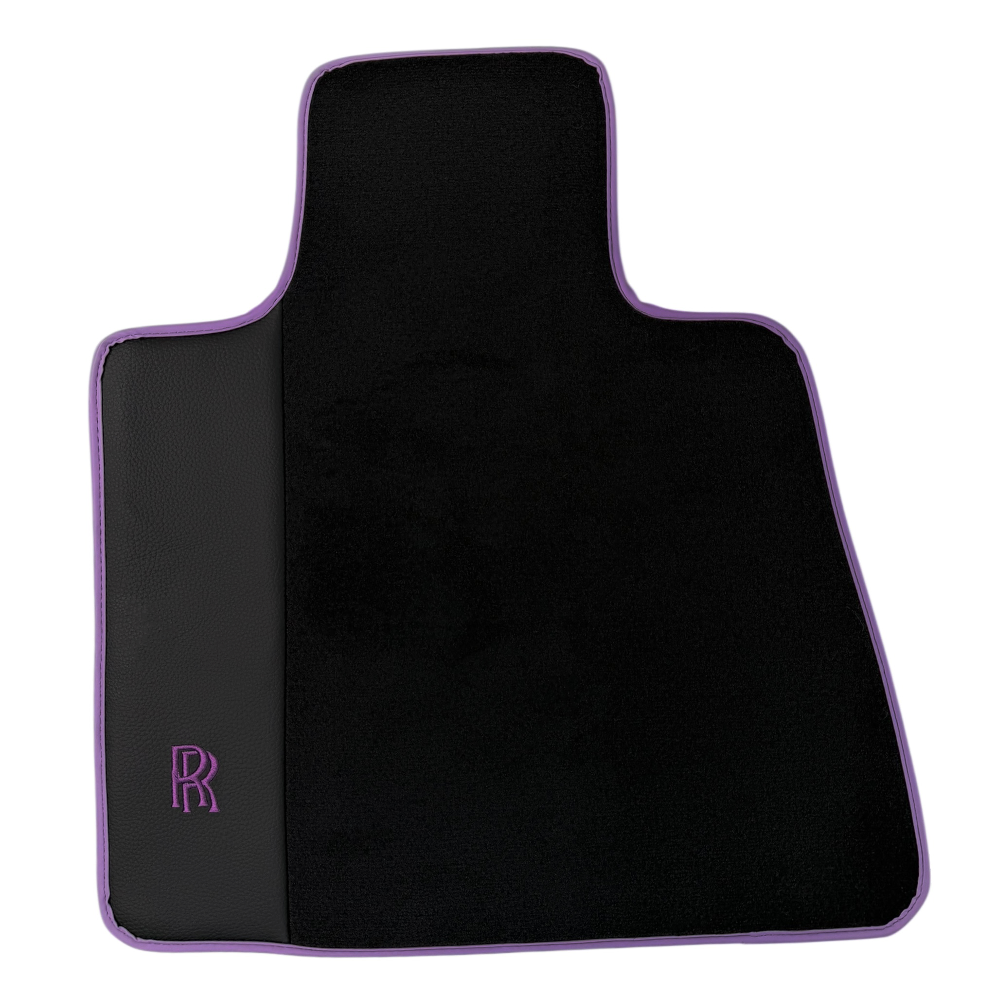 Black Floor Mats for Rolls Royce Wraith (2013-2023) with Purple Leather | RR Logo