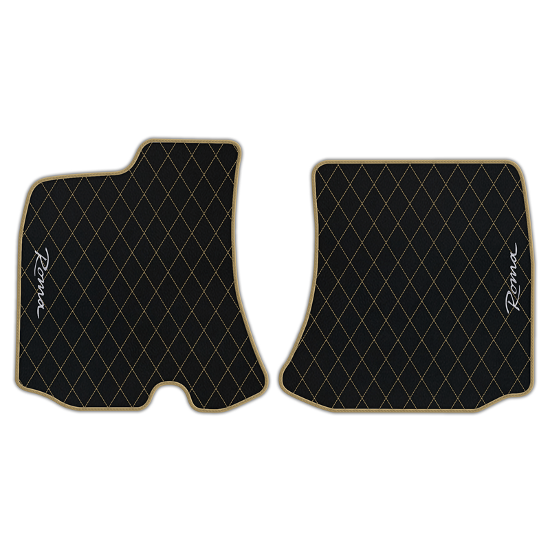 Black Leather Floor Mats for Ferrari Roma (2021-2024) with Single Diamond Pattern | Full Set Option