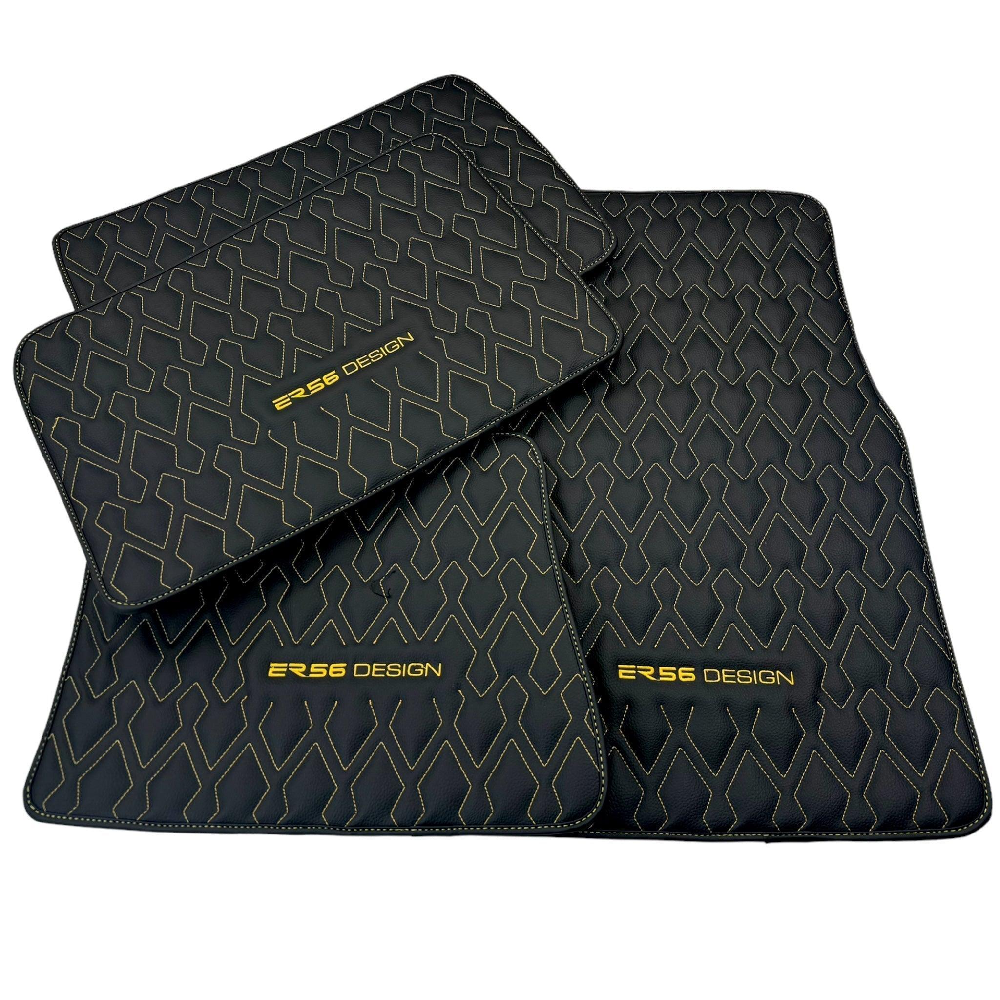 Black Leather Floor Mats for Rolls-Royce Phantom VIII (2017-2024) ER56 Design