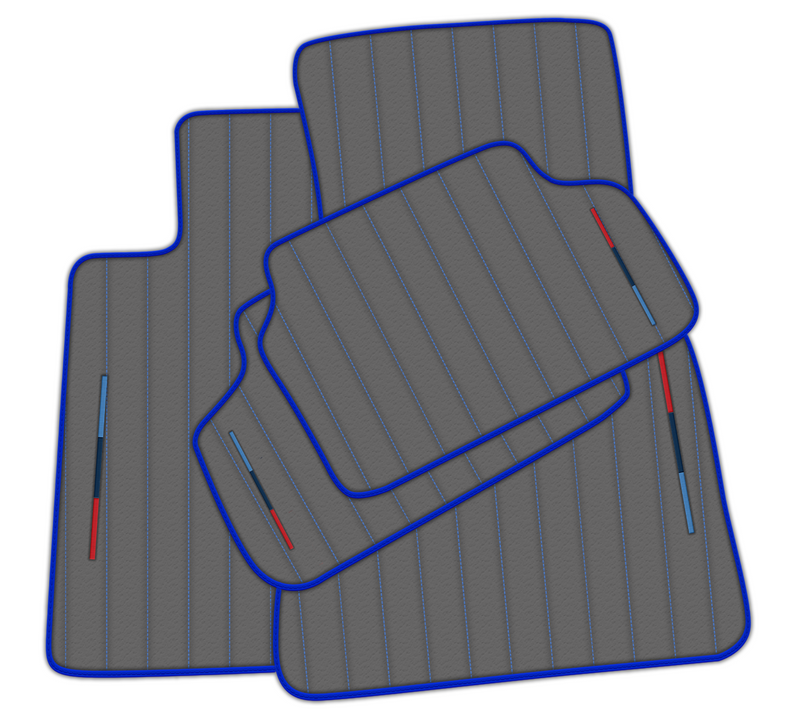 Mejora tu BMW con estos tapetes de coche de cuero gris de alta calidad. No solo proporcionan un aspecto elegante y estilizado con su patrón de líneas y costura azul, sino que también cuentan con el icónico tricolor M para una sofisticación adicional. Perfectos para proteger los pisos de tu vehículo mientras elevan su apariencia.