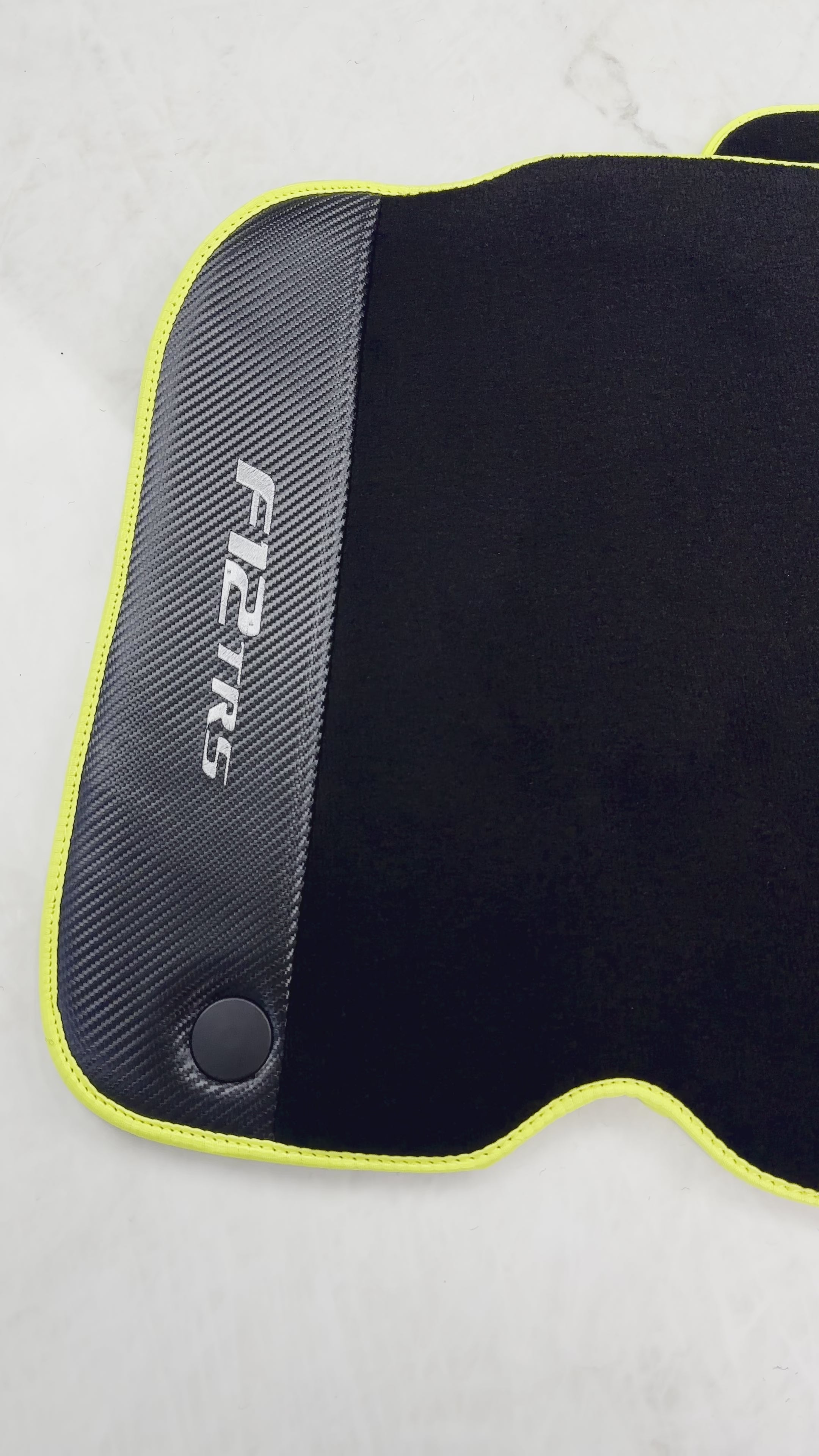 Tapis de voiture noirs pour Ferrari F12 TRS (2014) en cuir carbone